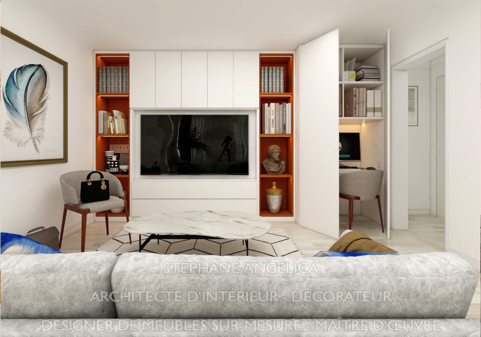 Bien plus que la simple rénovation intérieure de biens immobiliers, nous concevons des meubles et des rangements sur mesure, de fabrication française, réalisés par des menuisiers ébénistes hautement qualifiés. Quelle que soit la configuration de vos pièces, leurs hauteurs spécifiques ou leurs superficies atypiques, nos créations sont réalisées avec une grande précision pour s’adapter parfaitement à vos espaces et à vos besoins. Afin d’assurer une parfaite harmonie entre vos meubles sur mesure et votre décoration, il est recommandé de faire appel à Stéphane Angelica, architecte d’intérieur et designer de mobilier. Grâce à son expertise pointue, son sens affiné de l’esthétique et du détail, il transforme vos meubles en véritables œuvres d’art, apportant une touche d’élégance moderne et un design raffiné, créant ainsi un effet "waouh" dès le premier regard.