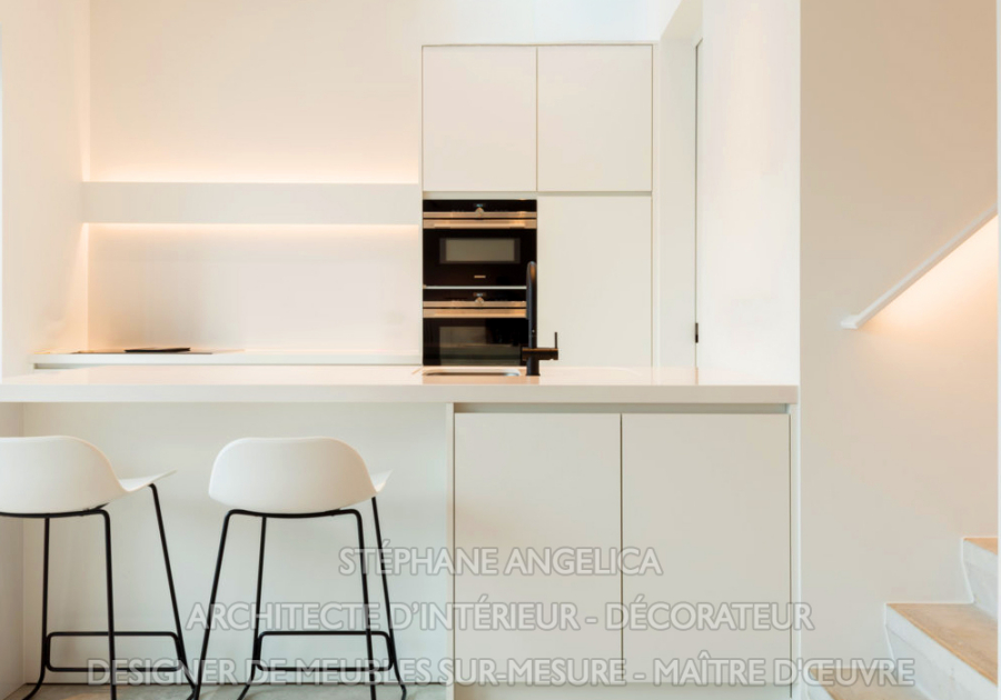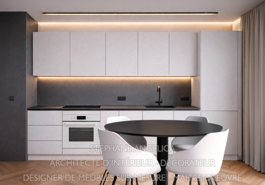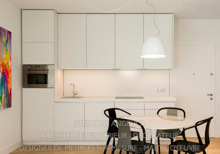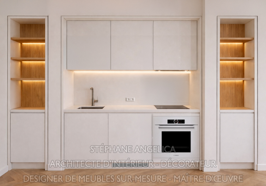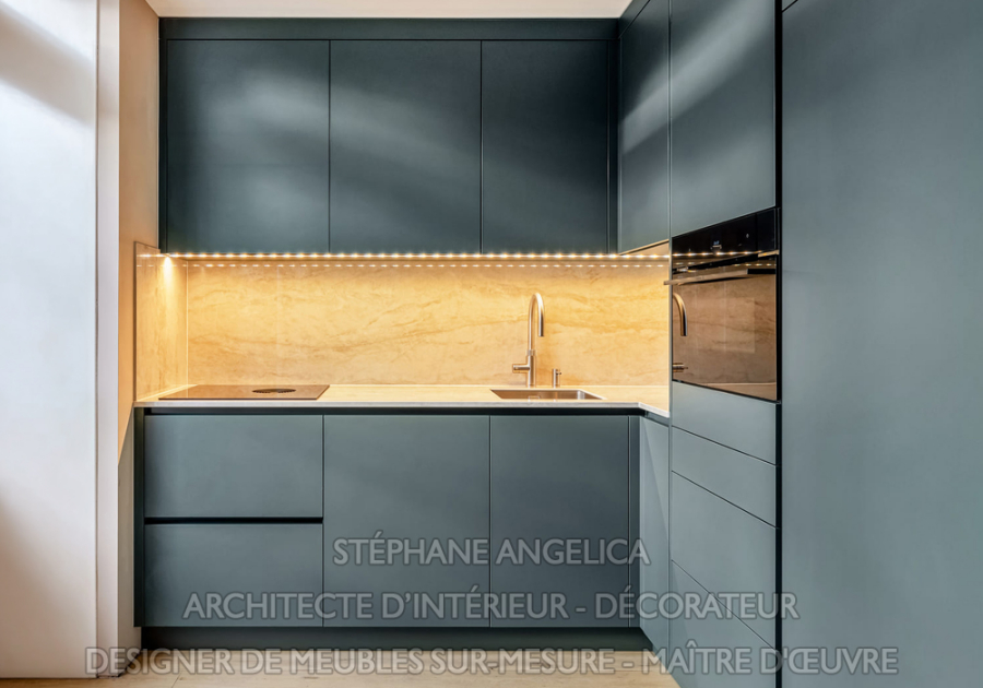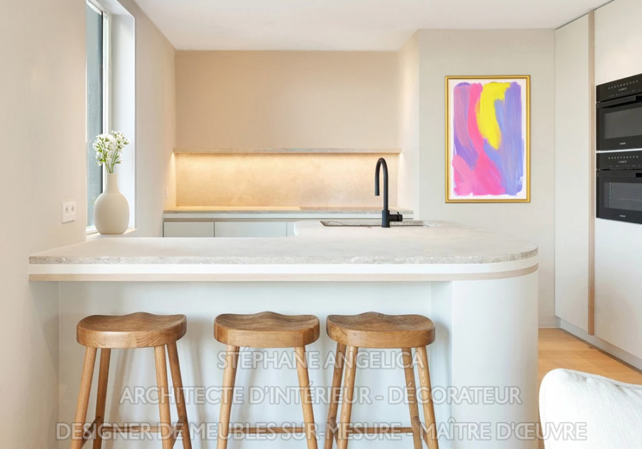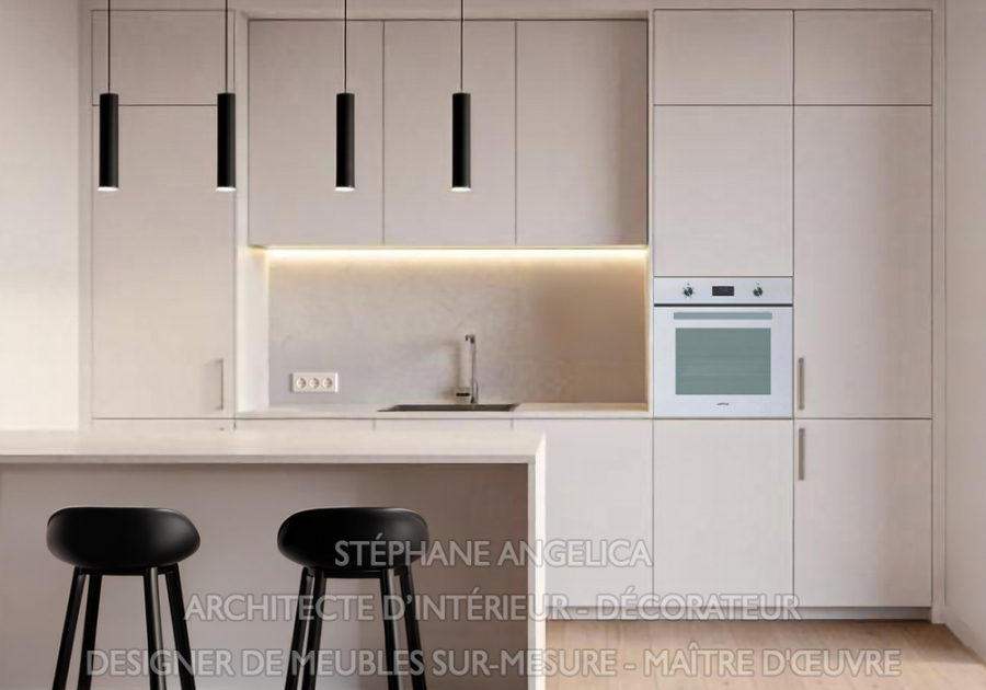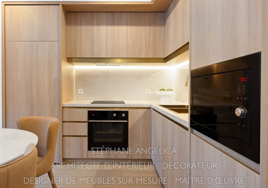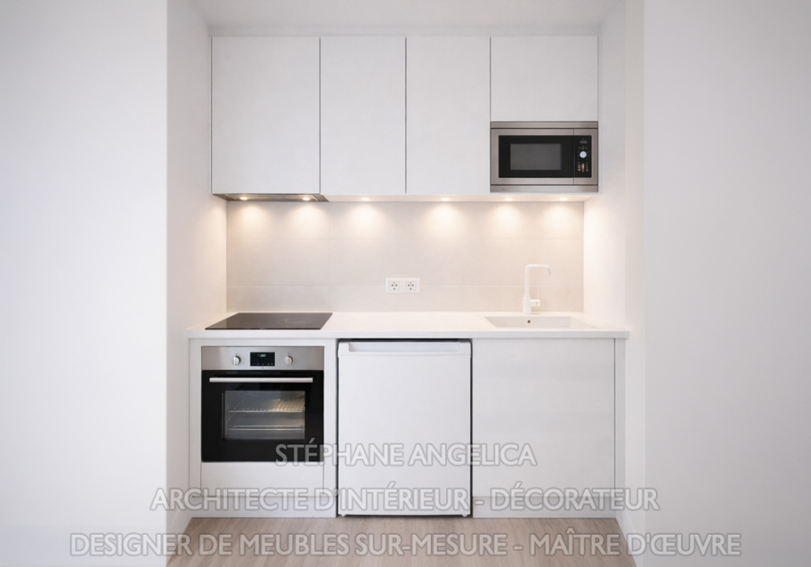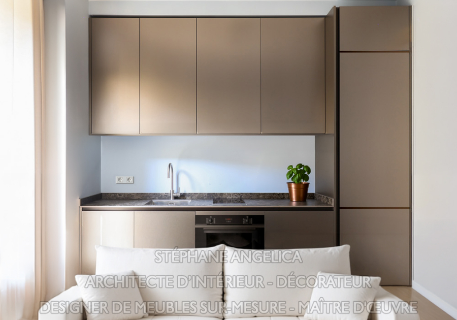 Vous manquez d’idées pour concevoir votre future cuisine ou kitchenette sur mesure ? Vous ne savez pas par où commencer ou comment optimiser votre espace ? Faire appel à Stéphane Angelica, architecte d’intérieur, décorateur et designer de mobilier, c’est bénéficier d’un accompagnement sur mesure et de conseils avisés pour définir un projet à la fois esthétique, fonctionnel et cohérent avec votre intérieur. Grâce à son expertise, vous évitez les erreurs, les fautes de goût et les choix approximatifs. À noter : l’intervention de l’architecte d’intérieur est particulièrement précieuse pour les clients confrontés à une multitude de choix à prendre.