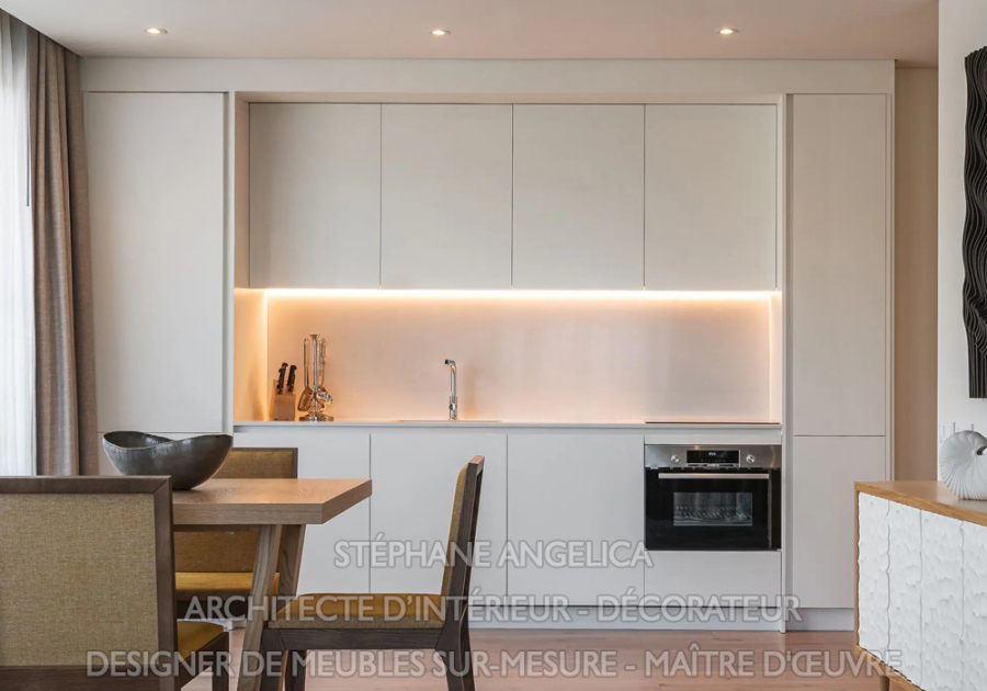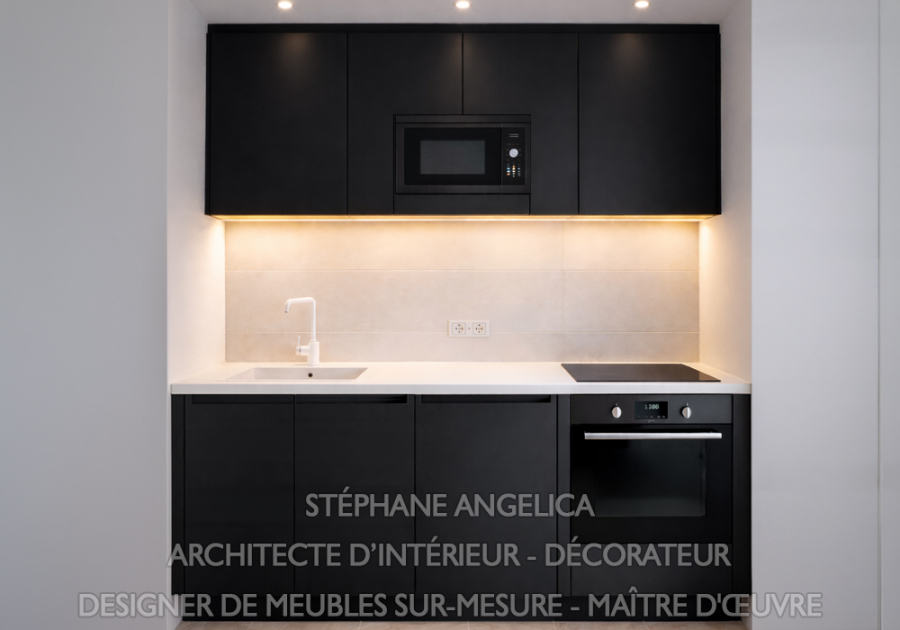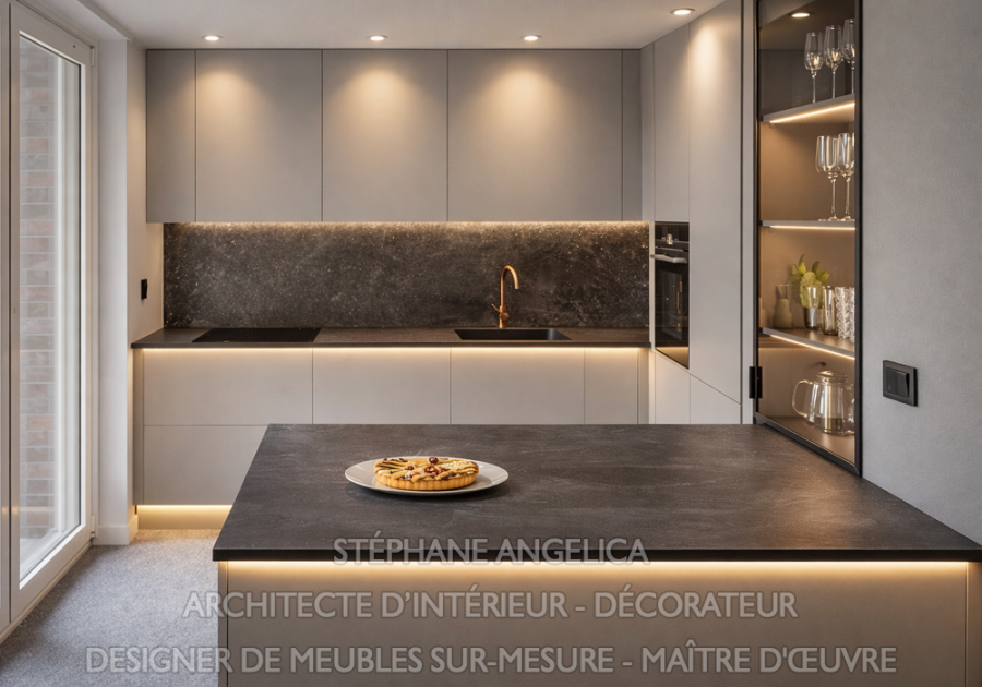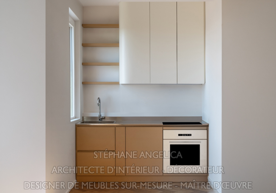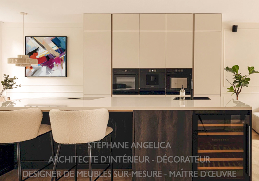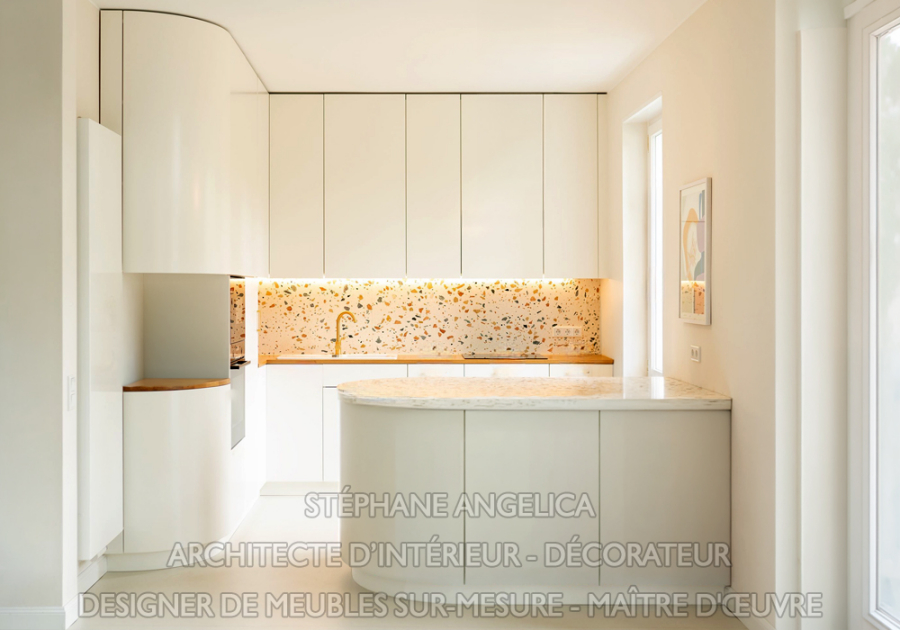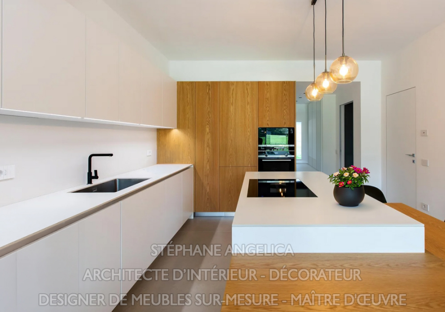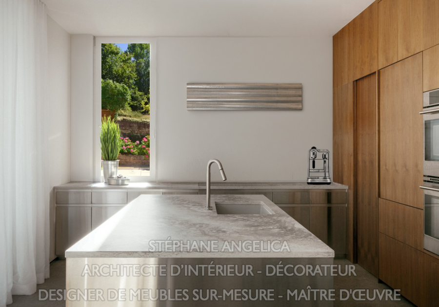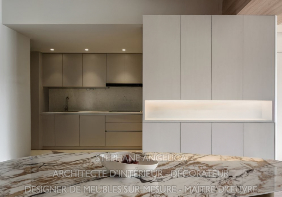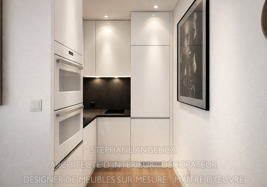 Vous manquez d’idées pour concevoir votre future cuisine ou kitchenette sur mesure ? Vous ne savez pas par où commencer ou comment optimiser votre espace ? Faire appel à Stéphane Angelica, architecte d’intérieur, décorateur et designer de mobilier, c’est bénéficier d’un accompagnement sur mesure et de conseils avisés pour définir un projet à la fois esthétique, fonctionnel et cohérent avec votre intérieur. Grâce à son expertise, vous évitez les erreurs, les fautes de goût et les choix approximatifs. À noter : l’intervention de l’architecte d’intérieur est particulièrement précieuse pour les clients confrontés à une multitude de choix à prendre.