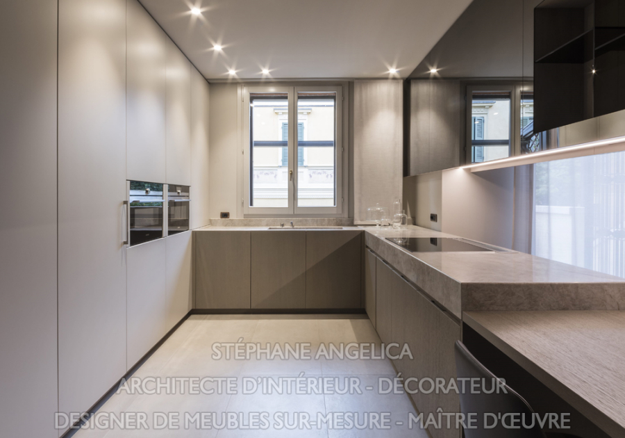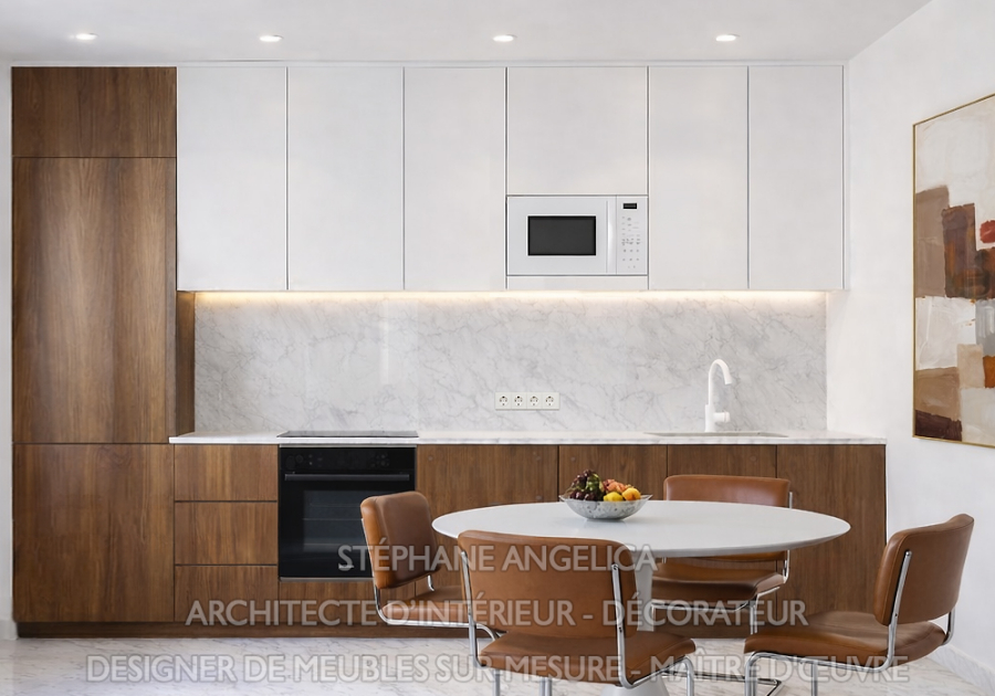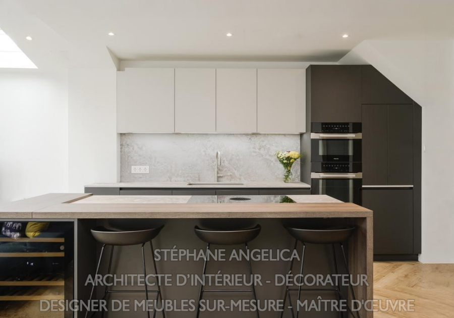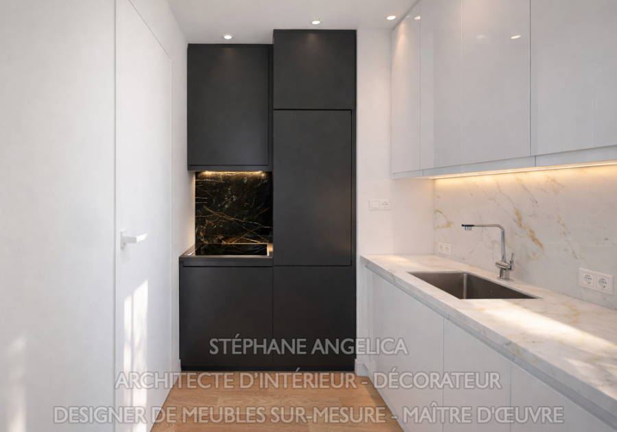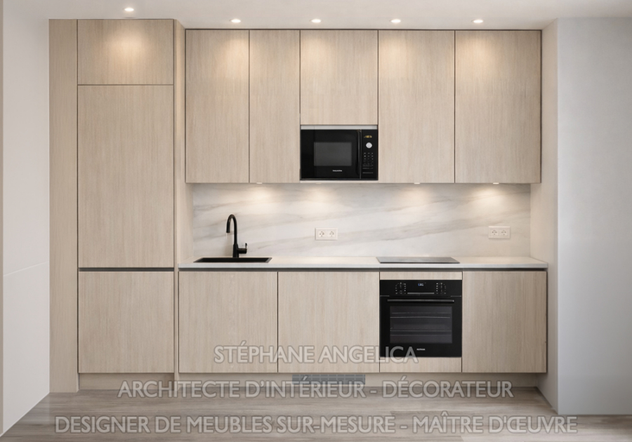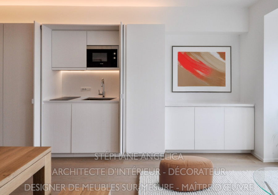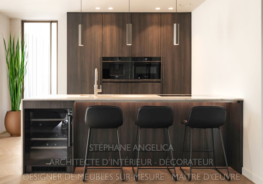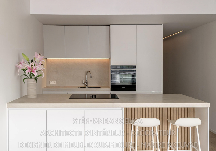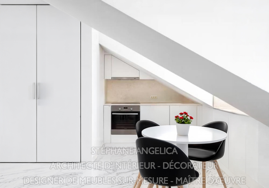Vous manquez d’idées pour concevoir votre future cuisine ou kitchenette sur mesure ? Vous ne savez pas par où commencer ou comment optimiser votre espace ? Faire appel à Stéphane Angelica, architecte d’intérieur, décorateur et designer de mobilier, c’est bénéficier d’un accompagnement sur mesure et de conseils avisés pour définir un projet à la fois esthétique, fonctionnel et cohérent avec votre intérieur. Grâce à son expertise, vous évitez les erreurs, les fautes de goût et les choix approximatifs. À noter : l’intervention de l’architecte d’intérieur est particulièrement précieuse pour les clients confrontés à une multitude de choix à prendre.