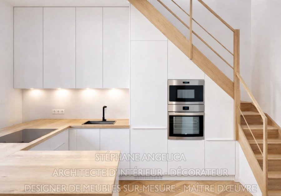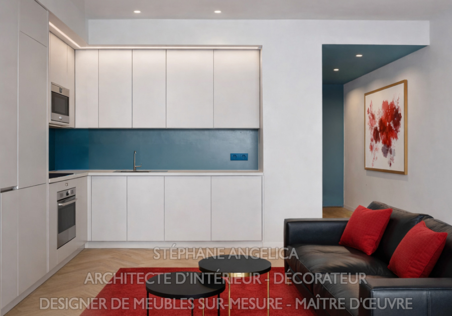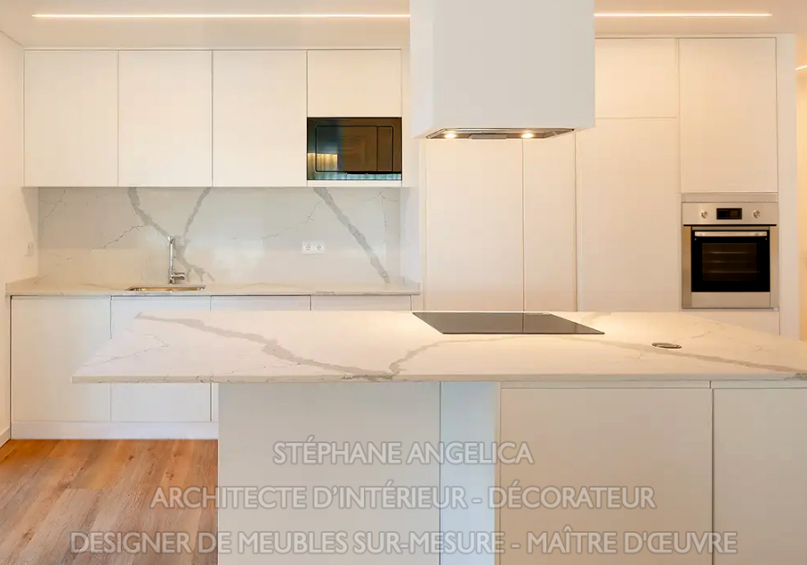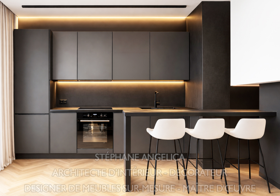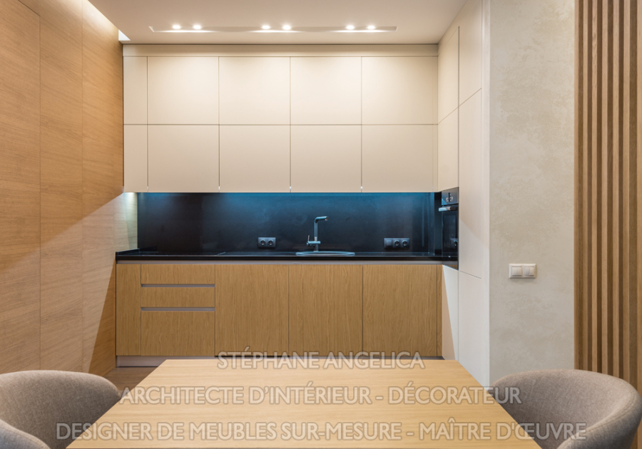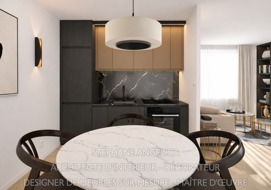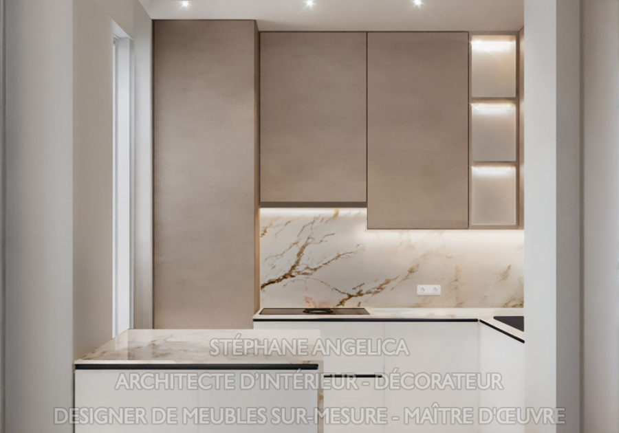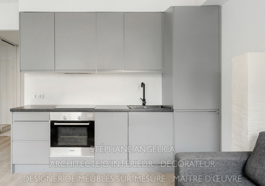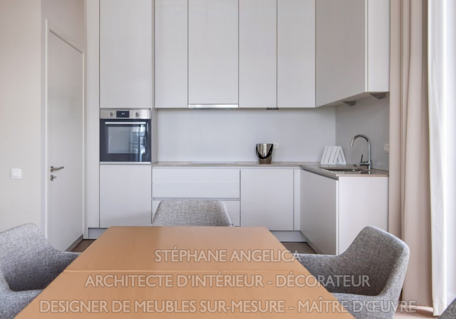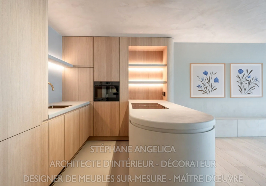Vous manquez d’idées pour concevoir votre future cuisine ou kitchenette sur mesure ? Vous ne savez pas par où commencer ou comment optimiser votre espace ? Faire appel à Stéphane Angelica, architecte d’intérieur, décorateur et designer de mobilier, c’est bénéficier d’un accompagnement sur mesure et de conseils avisés pour définir un projet à la fois esthétique, fonctionnel et cohérent avec votre intérieur. Grâce à son expertise, vous évitez les erreurs, les fautes de goût et les choix approximatifs. À noter : l’intervention de l’architecte d’intérieur est particulièrement précieuse pour les clients confrontés à une multitude de choix à prendre.