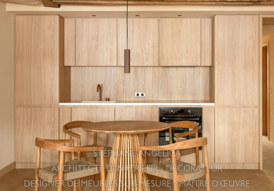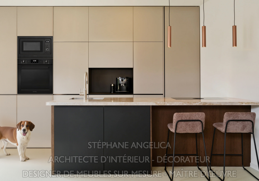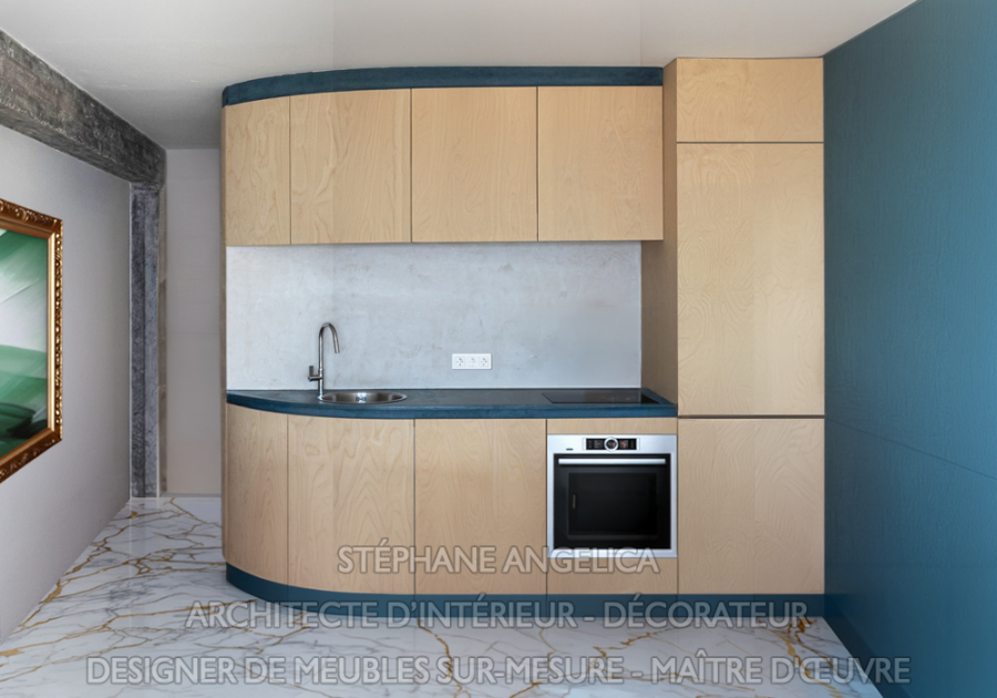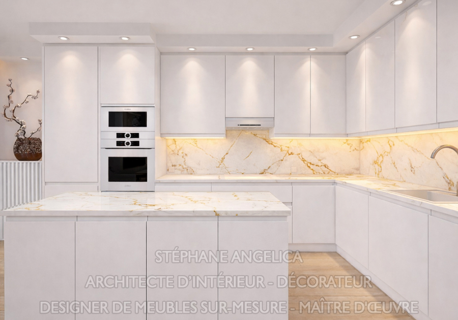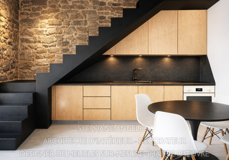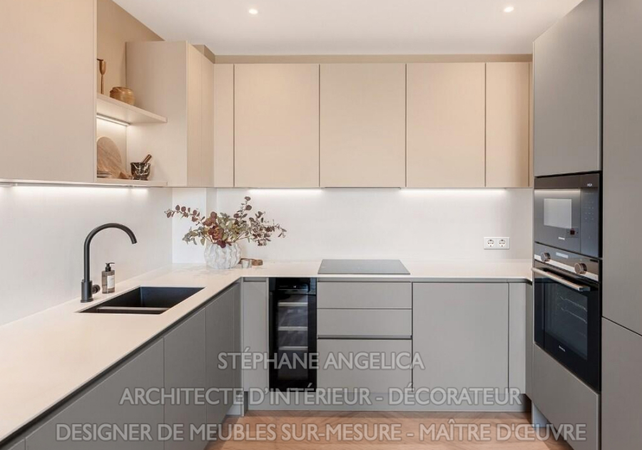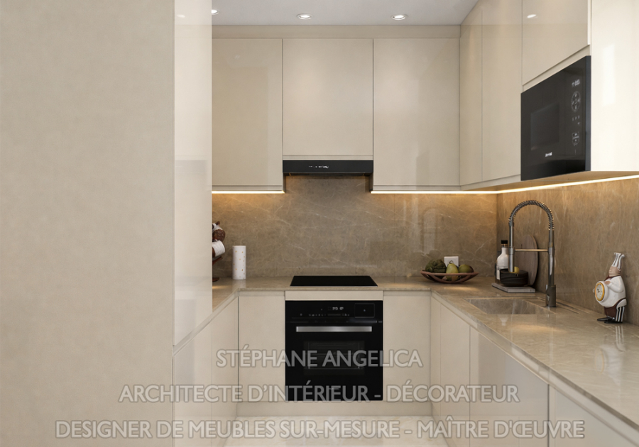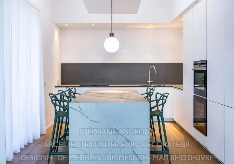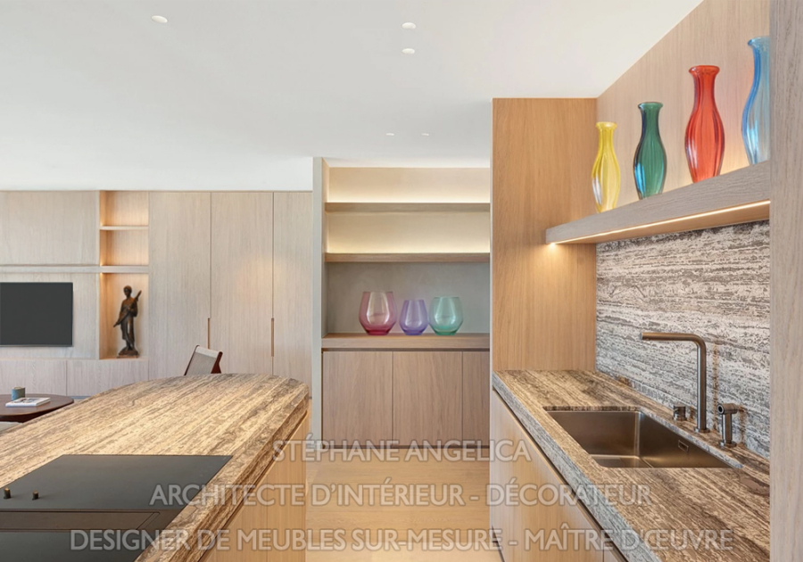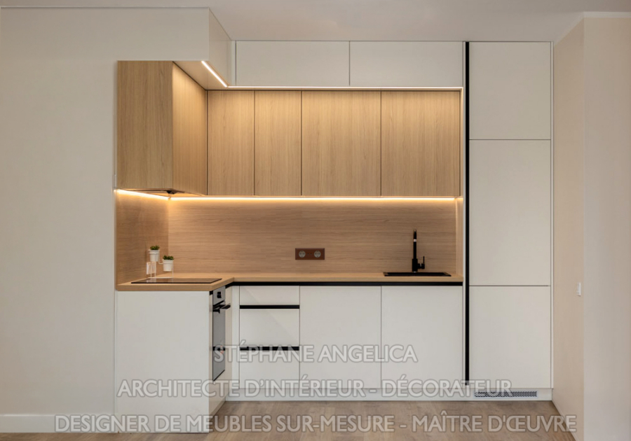Vous manquez d’idées pour concevoir votre future cuisine ou kitchenette sur mesure ? Vous ne savez pas par où commencer ou comment optimiser votre espace ? Faire appel à Stéphane Angelica, architecte d’intérieur, décorateur et designer de mobilier, c’est bénéficier d’un accompagnement sur mesure et de conseils avisés pour définir un projet à la fois esthétique, fonctionnel et cohérent avec votre intérieur. Grâce à son expertise, vous évitez les erreurs, les fautes de goût et les choix approximatifs. À noter : l’intervention de l’architecte d’intérieur est particulièrement précieuse pour les clients confrontés à une multitude de choix à prendre.