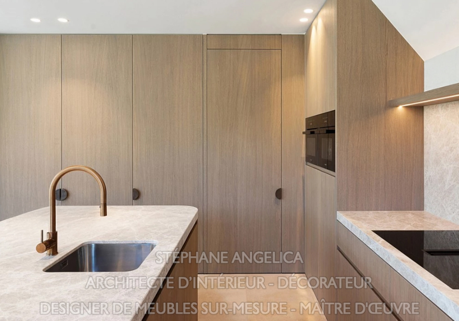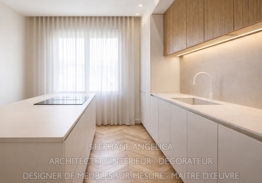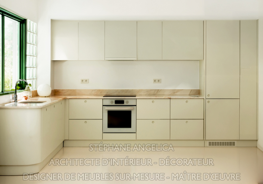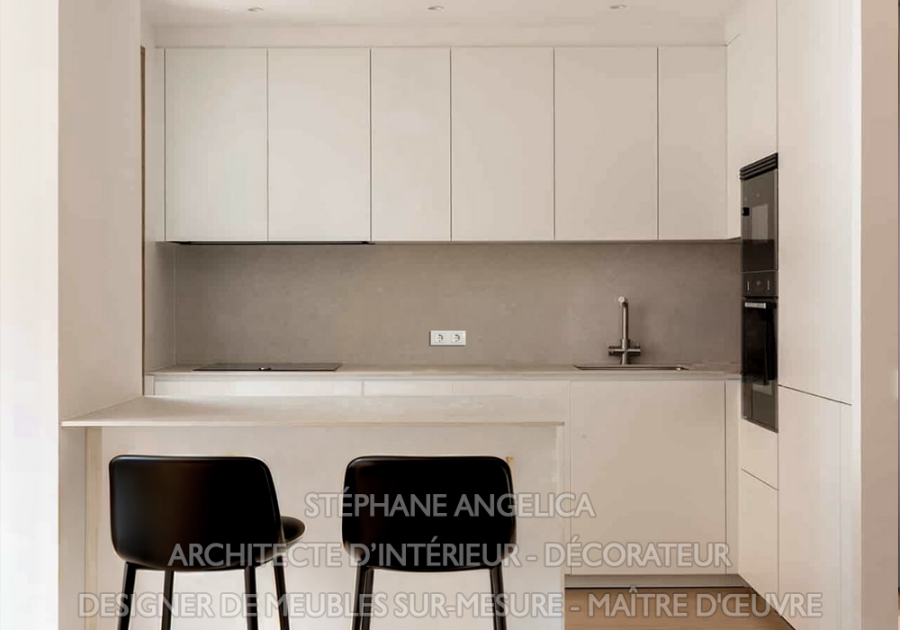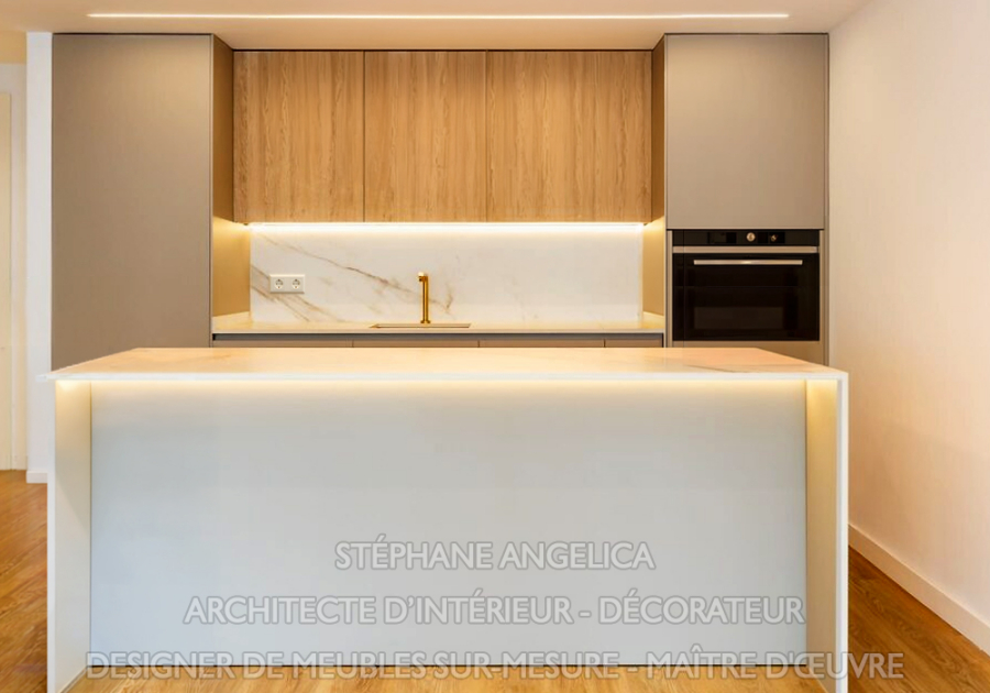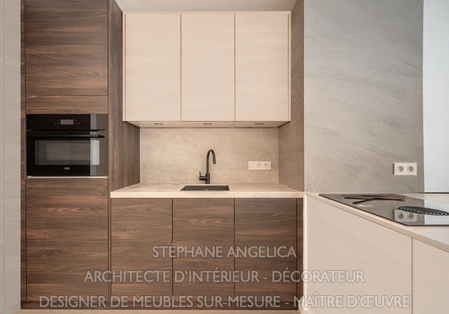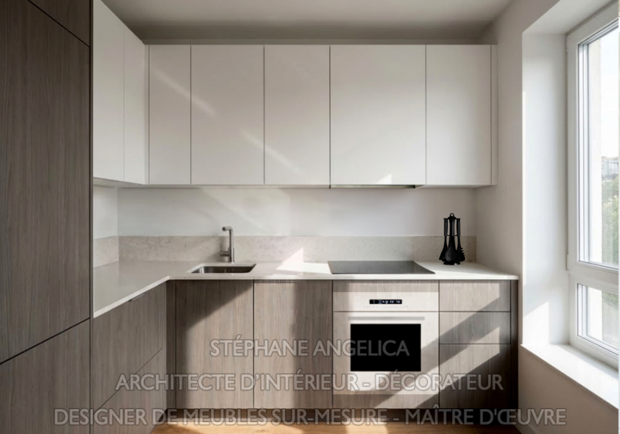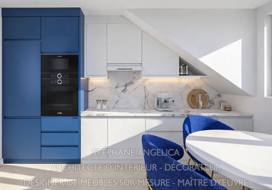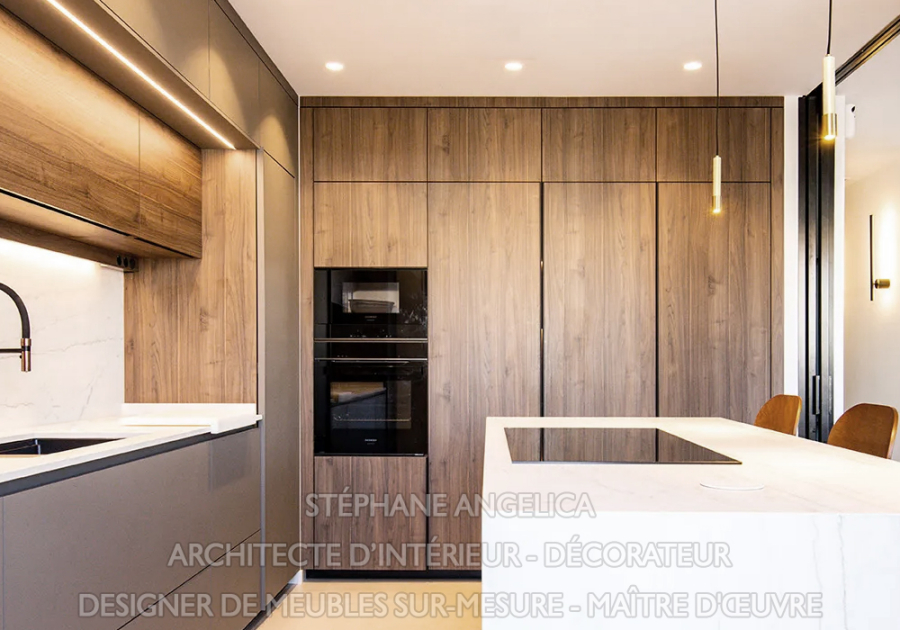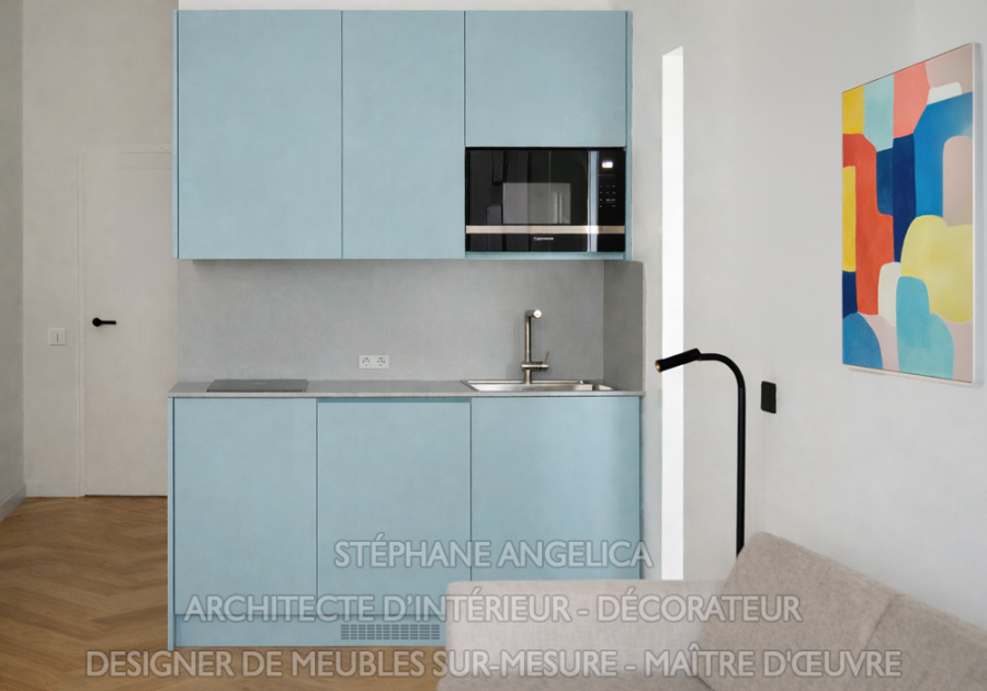 Vous manquez d’idées pour concevoir votre future cuisine ou kitchenette sur mesure ? Vous ne savez pas par où commencer ou comment optimiser votre espace ? Faire appel à Stéphane Angelica, architecte d’intérieur, décorateur et designer de mobilier, c’est bénéficier d’un accompagnement sur mesure et de conseils avisés pour définir un projet à la fois esthétique, fonctionnel et cohérent avec votre intérieur. Grâce à son expertise, vous évitez les erreurs, les fautes de goût et les choix approximatifs. À noter : l’intervention de l’architecte d’intérieur est particulièrement précieuse pour les clients confrontés à une multitude de choix à prendre.