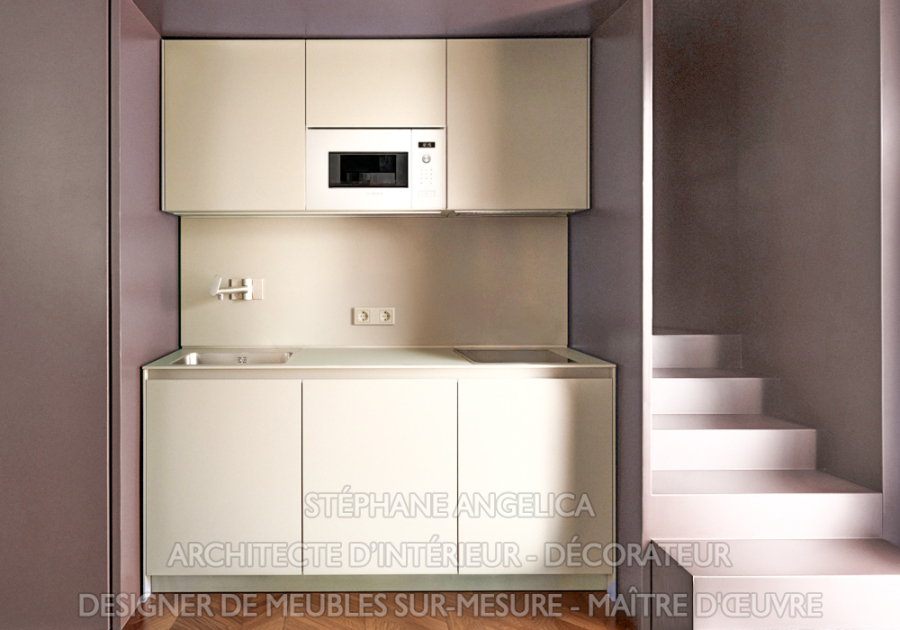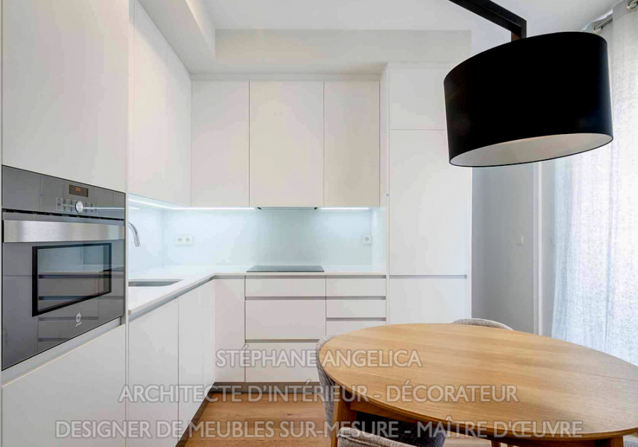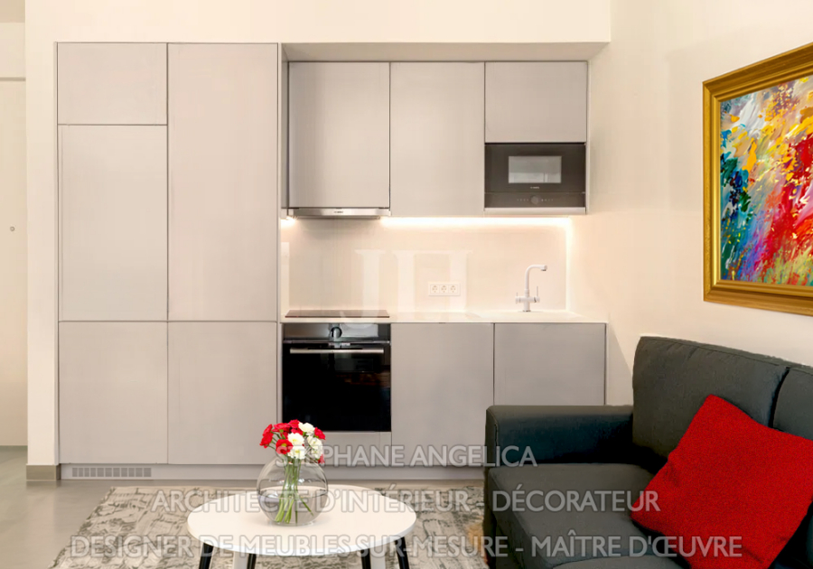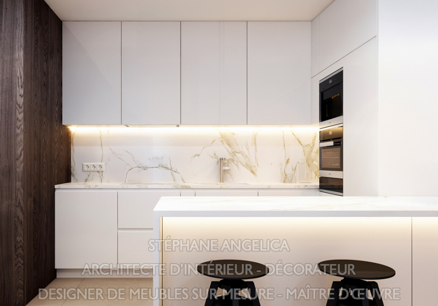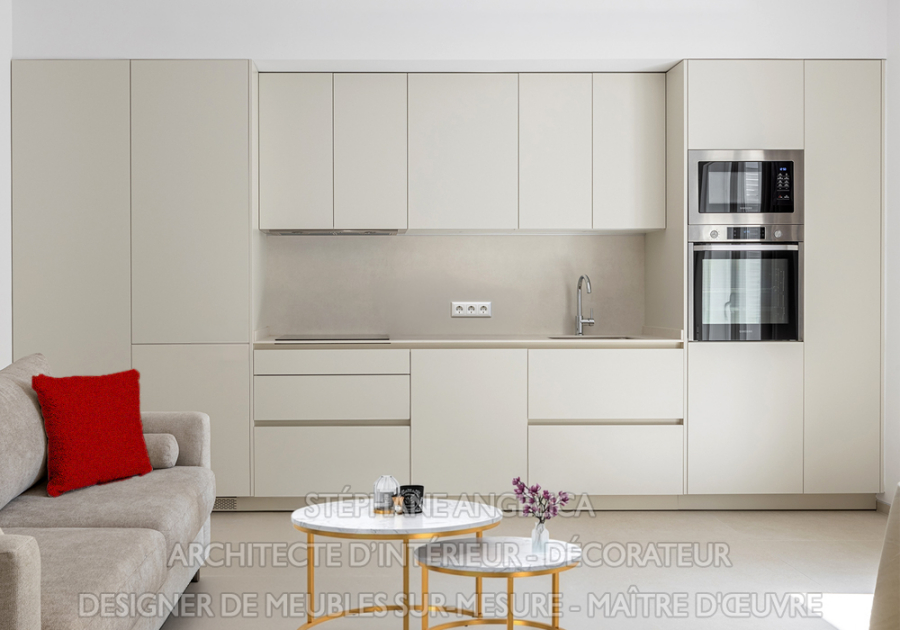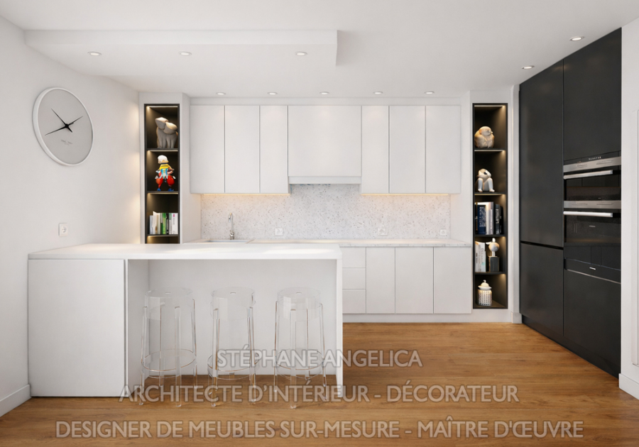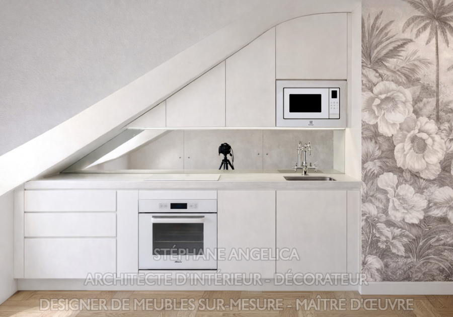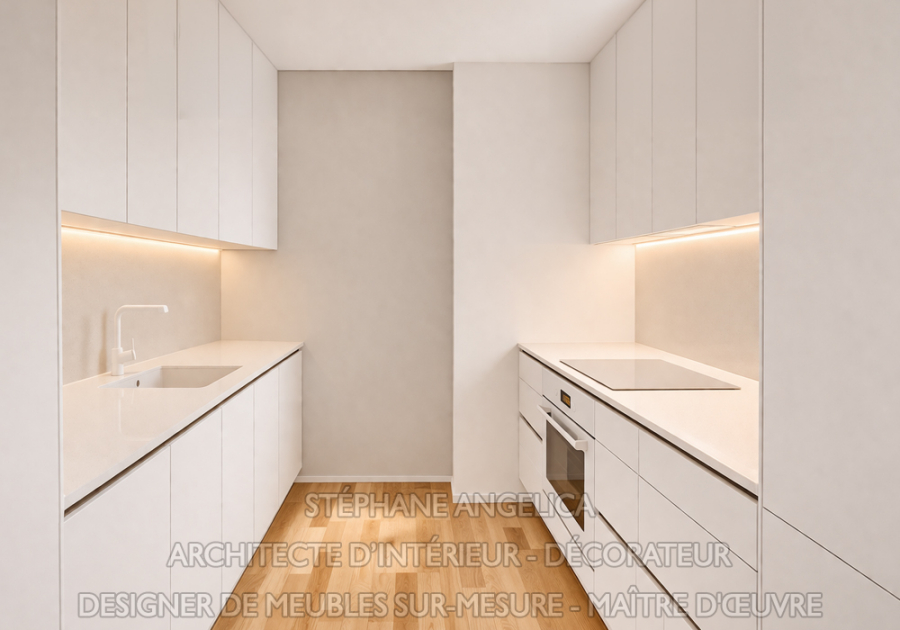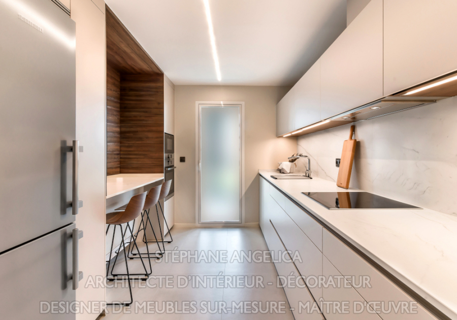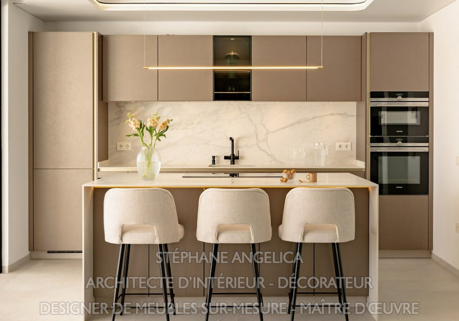 Vous manquez d’idées pour concevoir votre future cuisine ou kitchenette sur mesure ? Vous ne savez pas par où commencer ou comment optimiser votre espace ? Faire appel à Stéphane Angelica, architecte d’intérieur, décorateur et designer de mobilier, c’est bénéficier d’un accompagnement sur mesure et de conseils avisés pour définir un projet à la fois esthétique, fonctionnel et cohérent avec votre intérieur. Grâce à son expertise, vous évitez les erreurs, les fautes de goût et les choix approximatifs. À noter : l’intervention de l’architecte d’intérieur est particulièrement précieuse pour les clients confrontés à une multitude de choix à prendre.