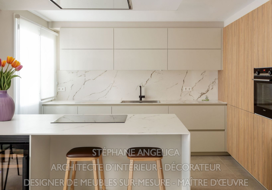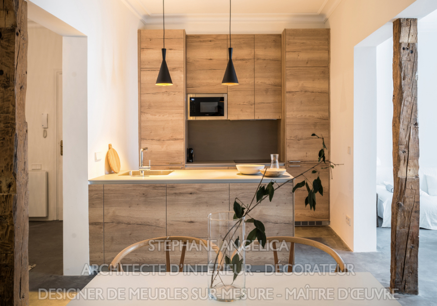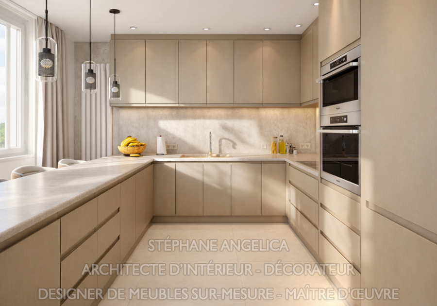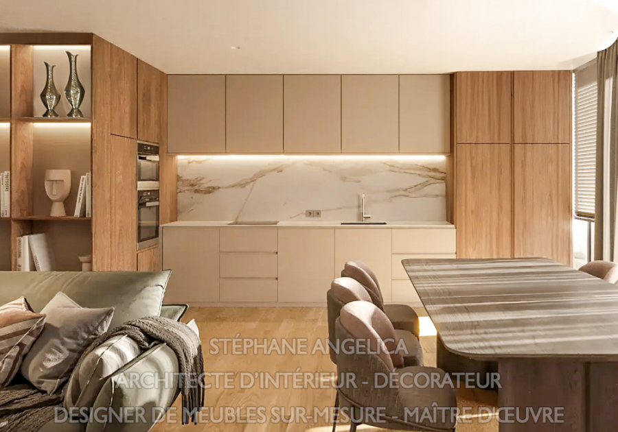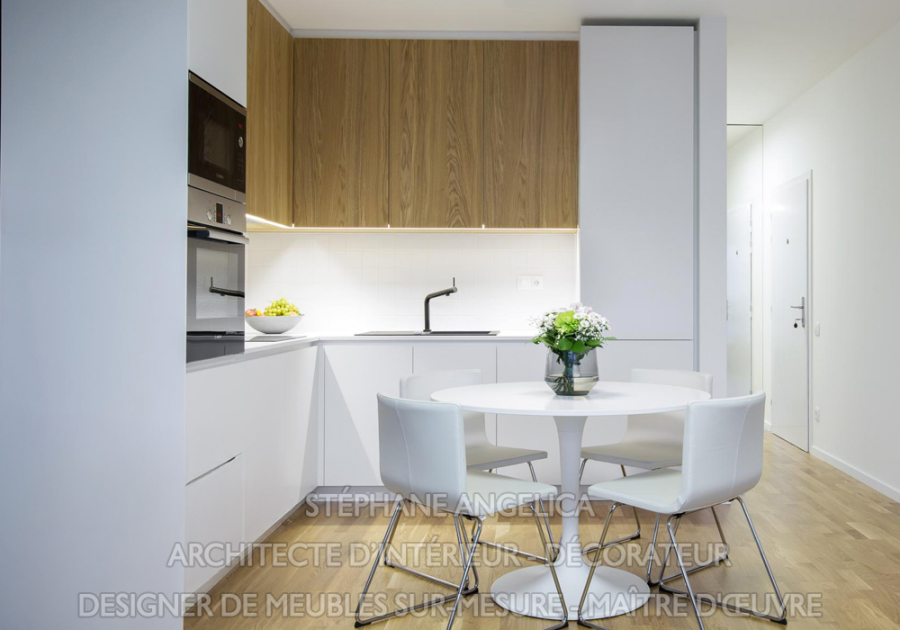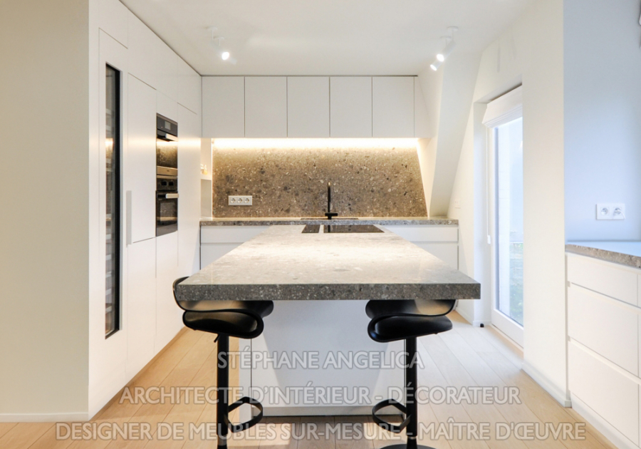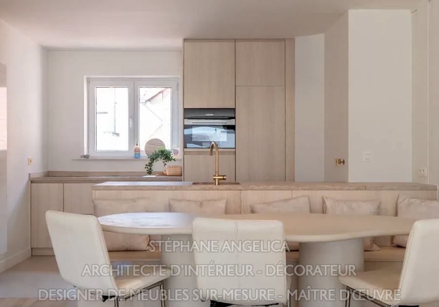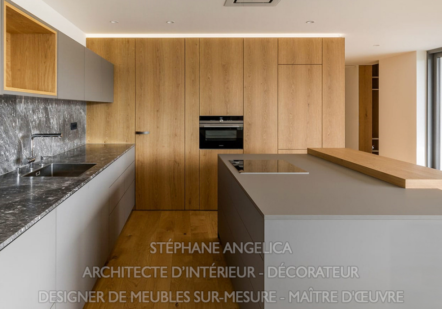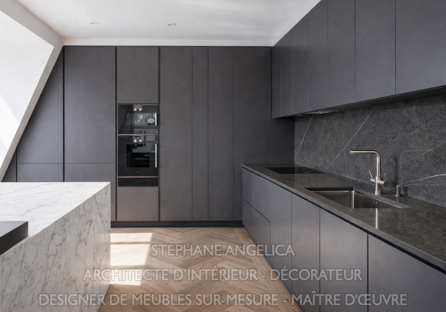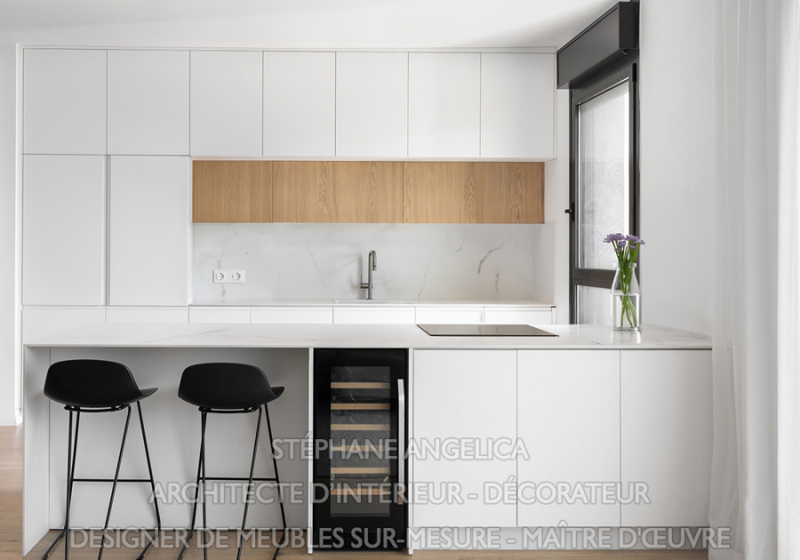 Vous manquez d’idées pour concevoir votre future cuisine ou kitchenette sur mesure ? Vous ne savez pas par où commencer ou comment optimiser votre espace ? Faire appel à Stéphane Angelica, architecte d’intérieur, décorateur et designer de mobilier, c’est bénéficier d’un accompagnement sur mesure et de conseils avisés pour définir un projet à la fois esthétique, fonctionnel et cohérent avec votre intérieur. Grâce à son expertise, vous évitez les erreurs, les fautes de goût et les choix approximatifs. À noter : l’intervention de l’architecte d’intérieur est particulièrement précieuse pour les clients confrontés à une multitude de choix à prendre.