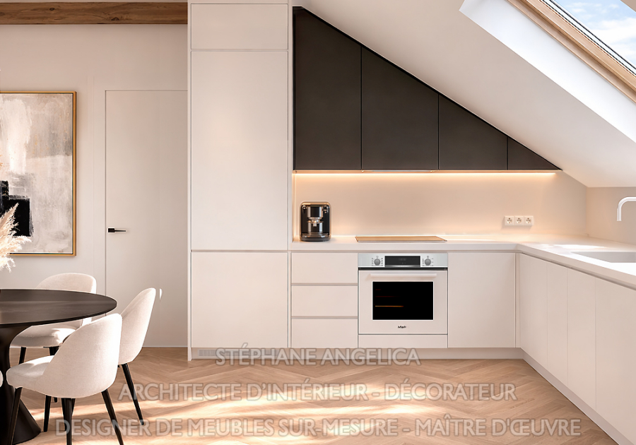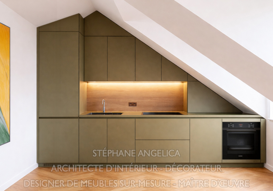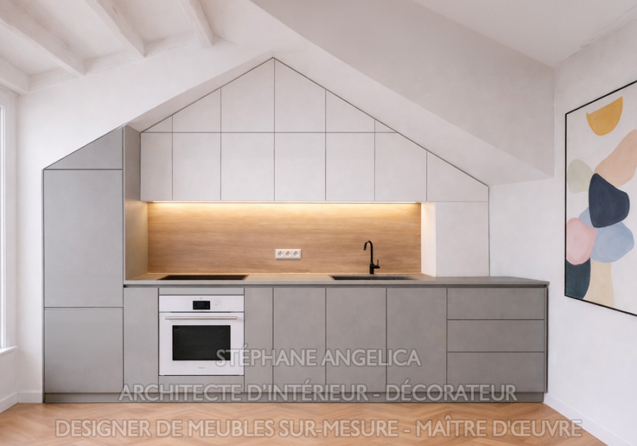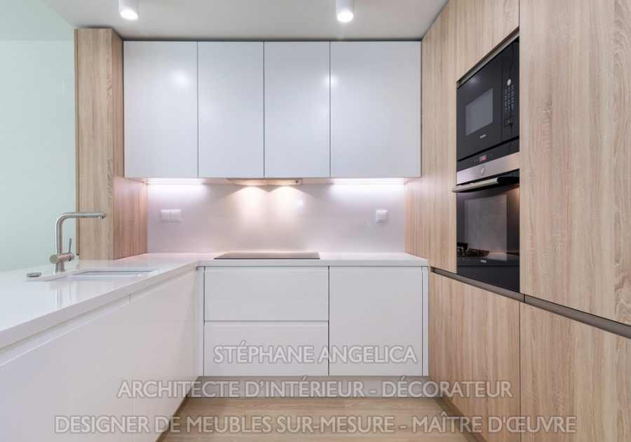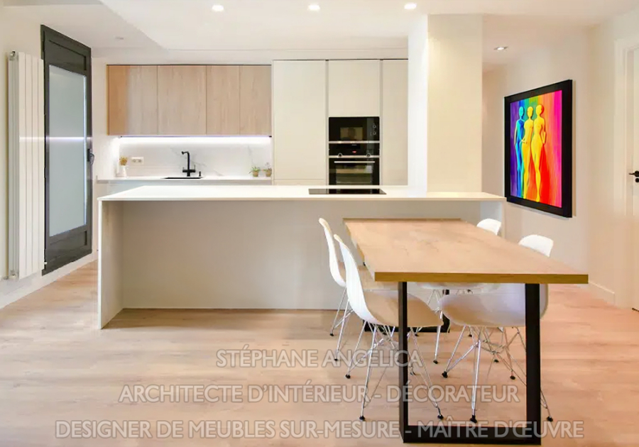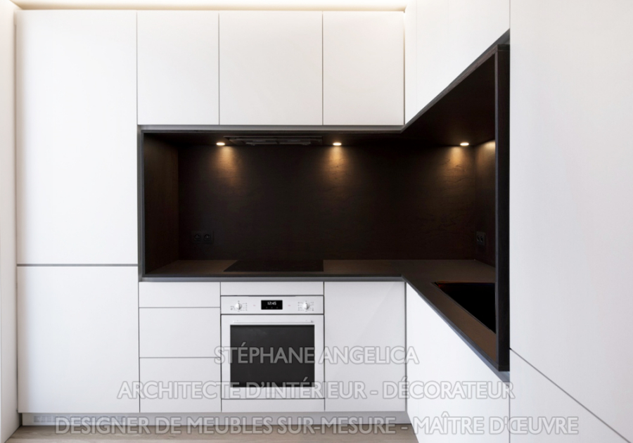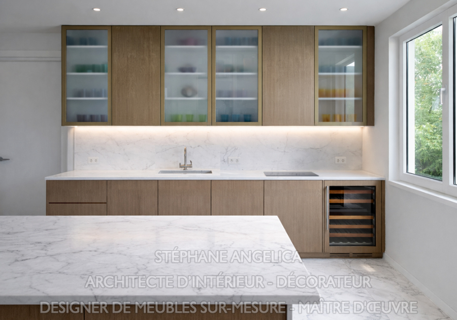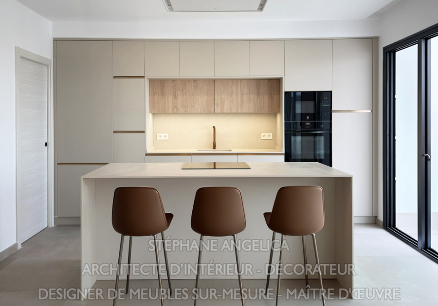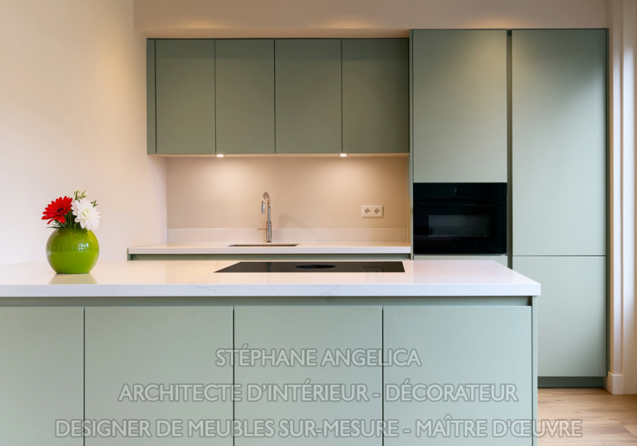 Vous manquez d’idées pour concevoir votre future cuisine ou kitchenette sur mesure ? Vous ne savez pas par où commencer ou comment optimiser votre espace ? Faire appel à Stéphane Angelica, architecte d’intérieur, décorateur et designer de mobilier, c’est bénéficier d’un accompagnement sur mesure et de conseils avisés pour définir un projet à la fois esthétique, fonctionnel et cohérent avec votre intérieur. Grâce à son expertise, vous évitez les erreurs, les fautes de goût et les choix approximatifs. À noter : l’intervention de l’architecte d’intérieur est particulièrement précieuse pour les clients confrontés à une multitude de choix à prendre.