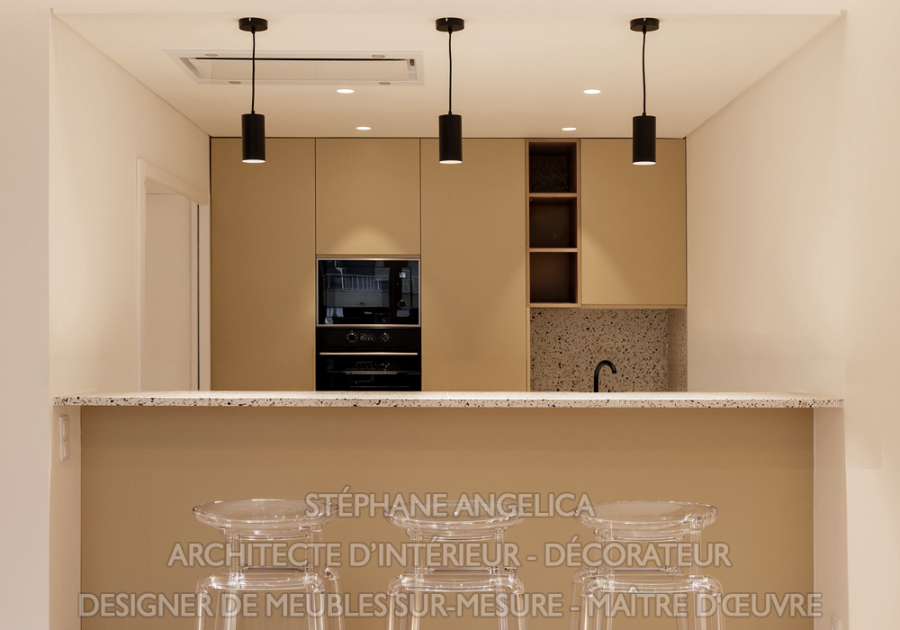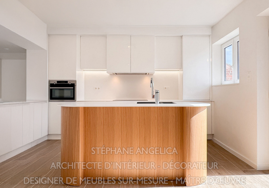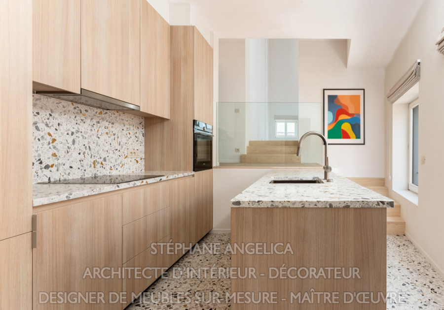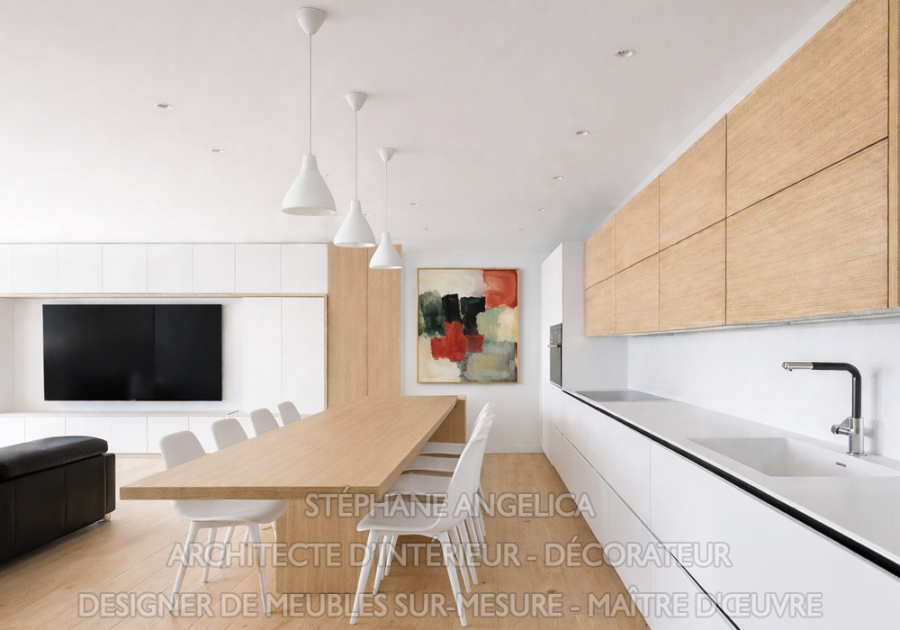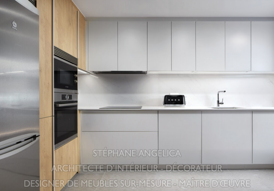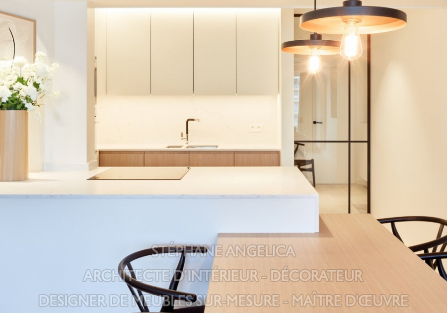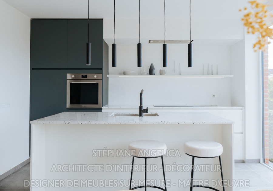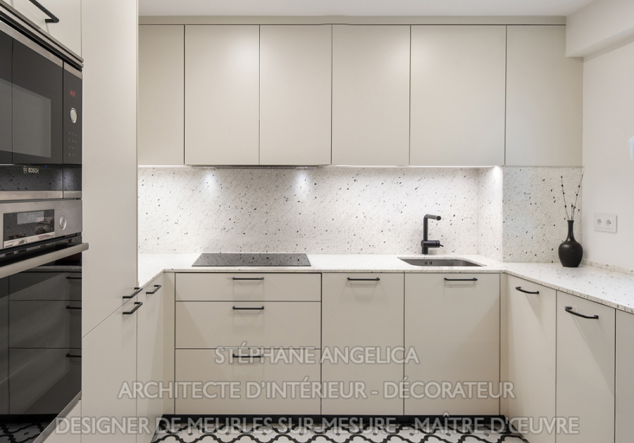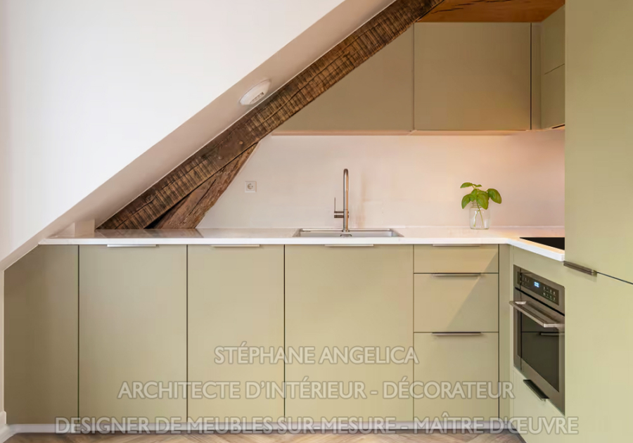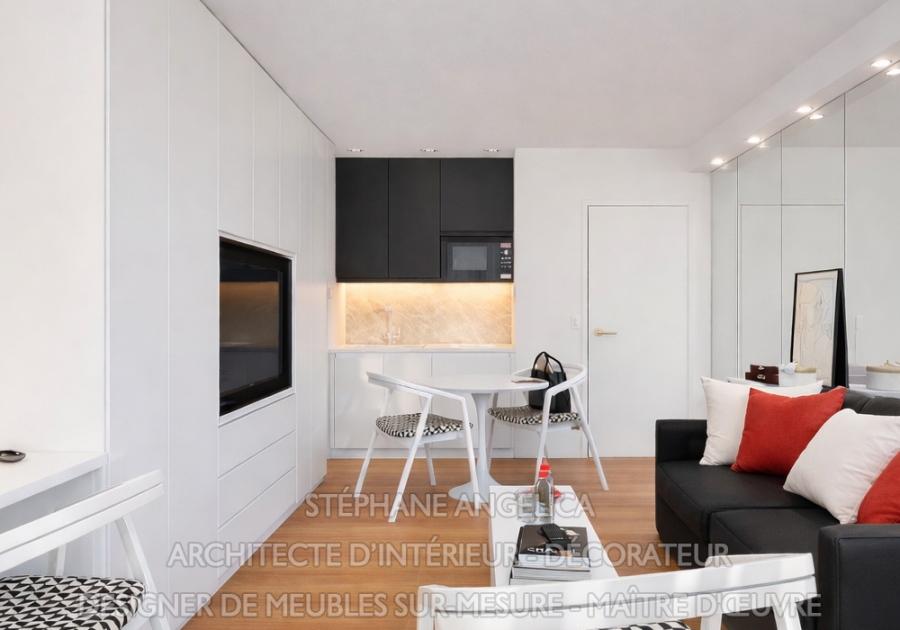 Vous manquez d’idées pour concevoir votre future cuisine ou kitchenette sur mesure ? Vous ne savez pas par où commencer ou comment optimiser votre espace ? Faire appel à Stéphane Angelica, architecte d’intérieur, décorateur et designer de mobilier, c’est bénéficier d’un accompagnement sur mesure et de conseils avisés pour définir un projet à la fois esthétique, fonctionnel et cohérent avec votre intérieur. Grâce à son expertise, vous évitez les erreurs, les fautes de goût et les choix approximatifs. À noter : l’intervention de l’architecte d’intérieur est particulièrement précieuse pour les clients confrontés à une multitude de choix à prendre.