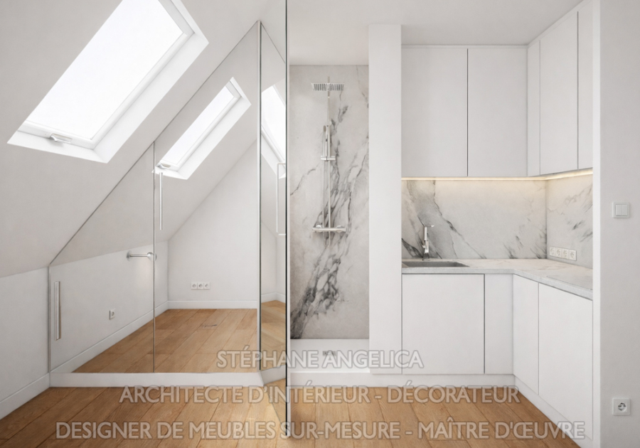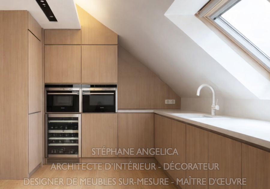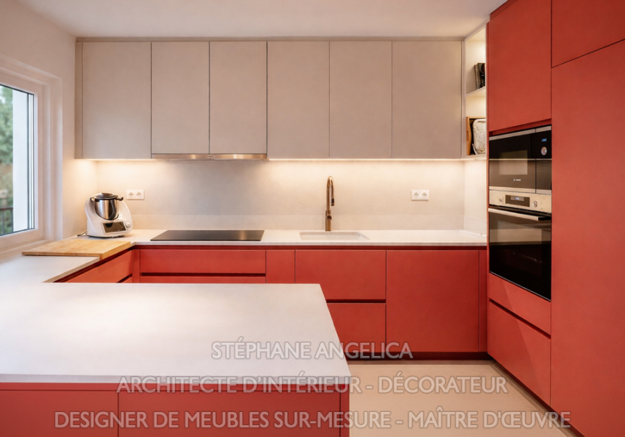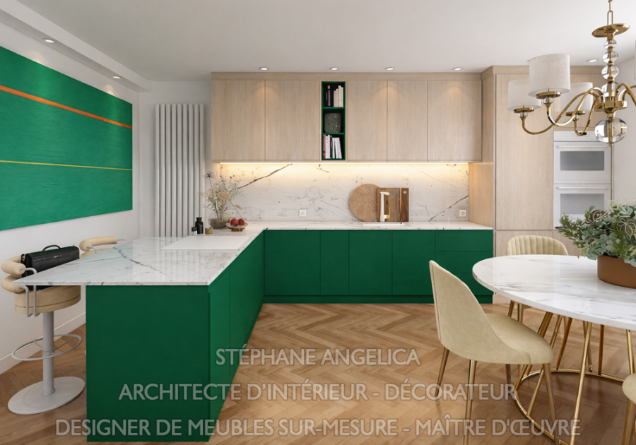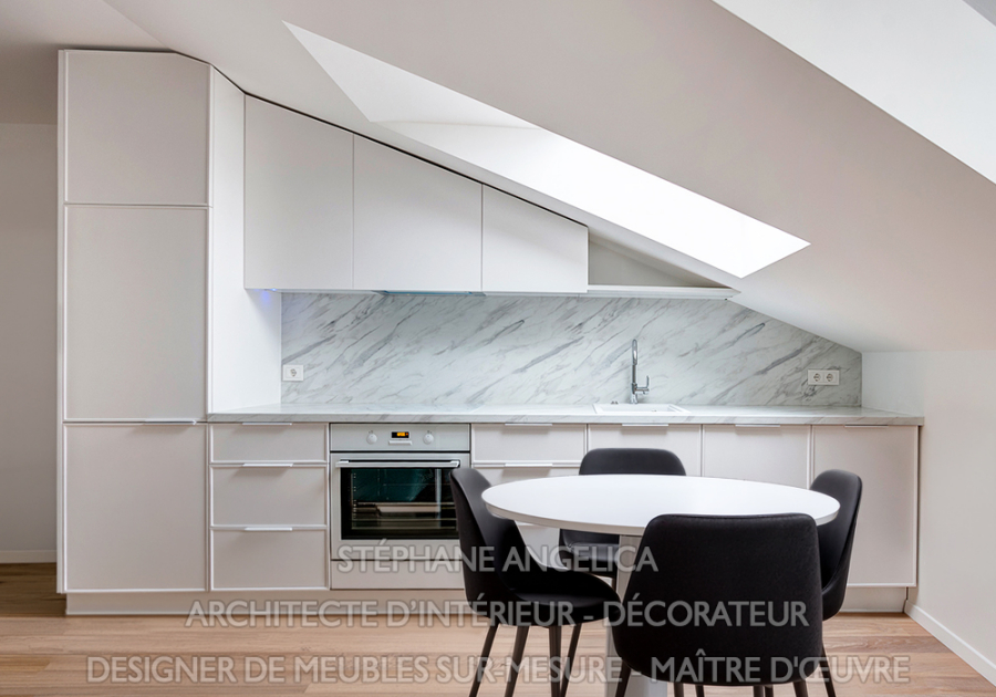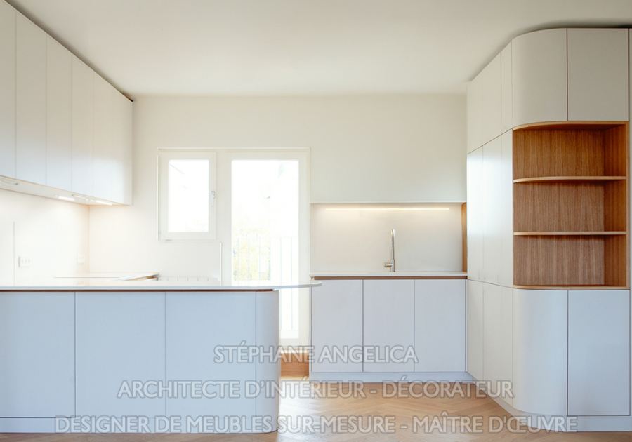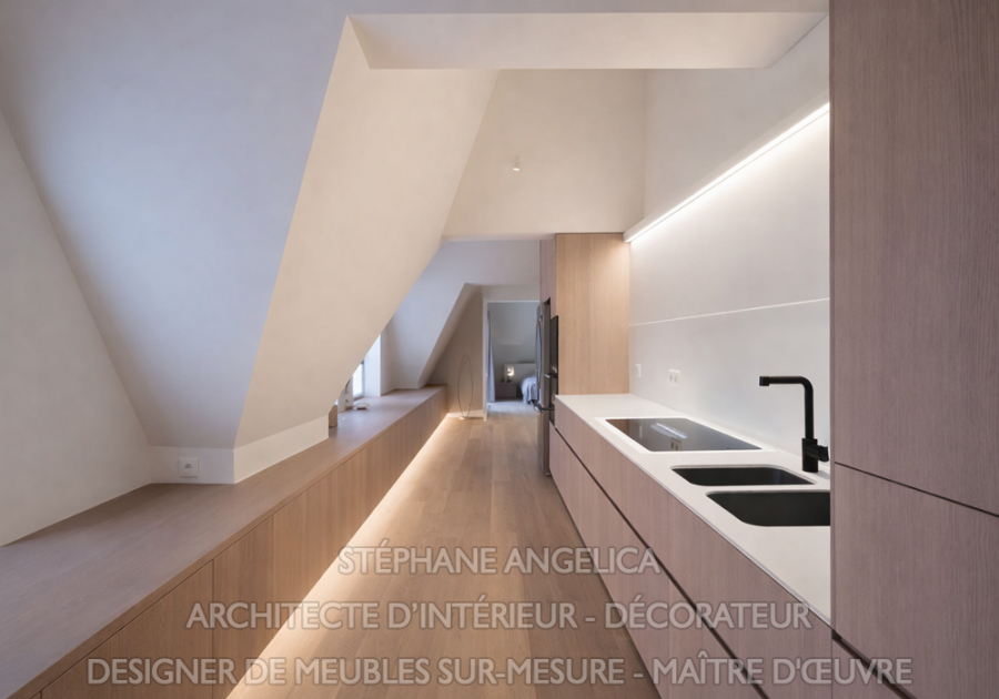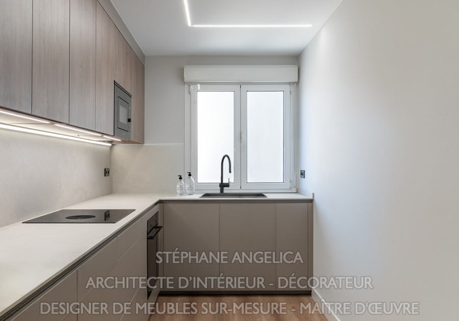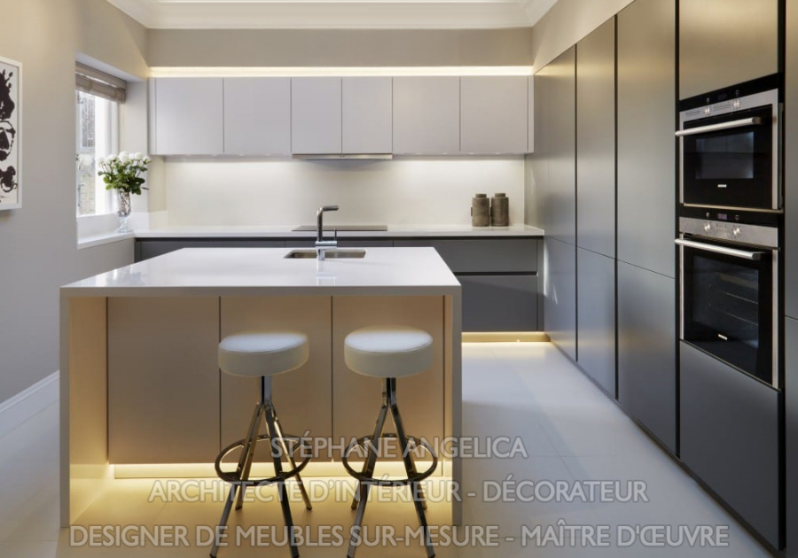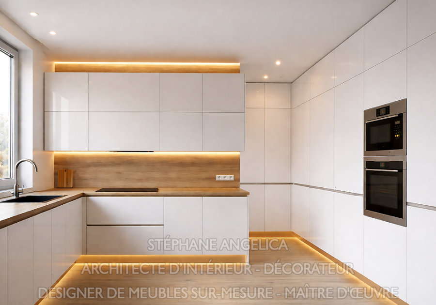 Vous manquez d’idées pour concevoir votre future cuisine ou kitchenette sur mesure ? Vous ne savez pas par où commencer ou comment optimiser votre espace ? Faire appel à Stéphane Angelica, architecte d’intérieur, décorateur et designer de mobilier, c’est bénéficier d’un accompagnement sur mesure et de conseils avisés pour définir un projet à la fois esthétique, fonctionnel et cohérent avec votre intérieur. Grâce à son expertise, vous évitez les erreurs, les fautes de goût et les choix approximatifs. À noter : l’intervention de l’architecte d’intérieur est particulièrement précieuse pour les clients confrontés à une multitude de choix à prendre.